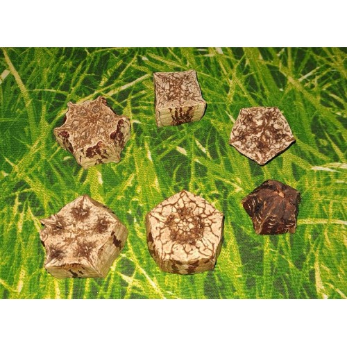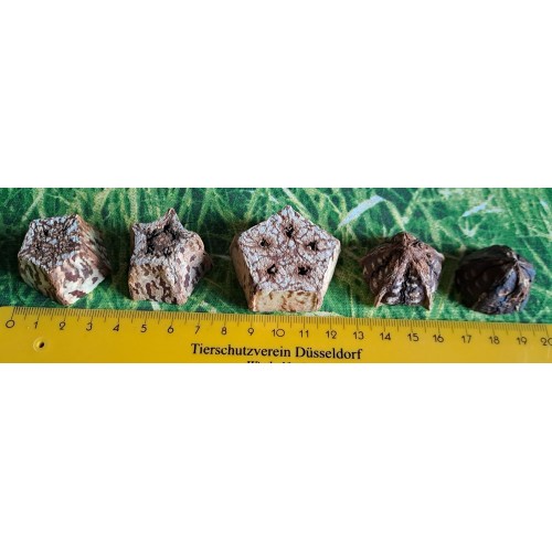Etwas härter als Balsa und Sola werden die Scheiben und Endstücke der getrockneten Mahagoniblüte sehr gerne angenommen.